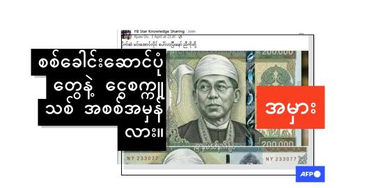ပုံရိပ် ဥာဏ်ရည်တုနည်းပညာ ပုံနှိပ်ဖော်ပြသည့်နေ့စွဲ 13/04/2026 စစ်ခေါင်းဆောင် မင်းအောင်လှိုင်မျက်နှာနဲ့ ငွေစက္ကူရုပ်ပုံတွေဟာ AI ဖန်တီးမှုသာဖြစ်