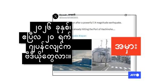 ဂျပန်နိုင်ငံတောင်ပိုင်းက ၇.၇ မဂ္ဂနီကျု ငလျင်လှုပ်ခတ်မှုဆိုပြီး ဗီဒီယိုဟောင်းတွေမှားယွင်းပျံ့နှံ့