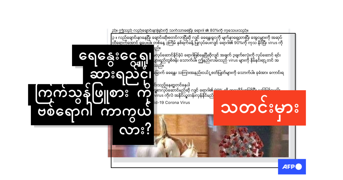 ကြက်သွန်ဖြူက ဗိုင်းရပ်စ်ကို ကာကွယ်မပေးနိုင်ဘူးဆိုတဲ့ AFP ရဲ့ သတင်းအချက်အလက်စိစစ်မှု သတင်းတစ်ခုကိုလည်း ဒီမှာ ဖတ်ရှုနိုင်ပါတယ်။