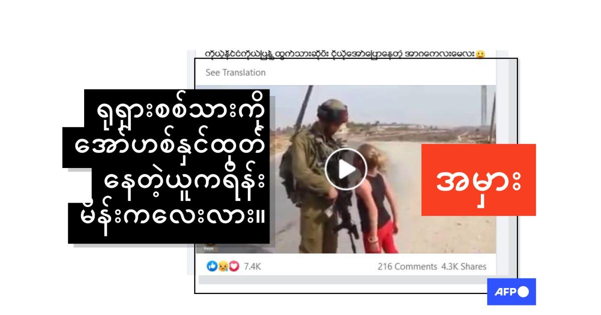 ပဋိပက္ခအရှိန်အဟုန်မြင့်လာတာနဲ့အတူ မဟုတ်မမှန်သတင်းတွေလည်း အွန်လိုင်းပေါ်မှာ မြင့်တက်လာခဲ့ပါတယ်။ အွန်လိုင်းပေါ်က ပြောဆိုမှုအမှားတွေနဲ့ ပတ်သက်ပြီး AFP ရဲ့ သတင်းအချက်အလက်စိစစ်မှုတွေကို ဒီလင့်ခ်မှာ တစုတစည်းတည်း ဖတ်ရှုနိုင်ပါတယ်။