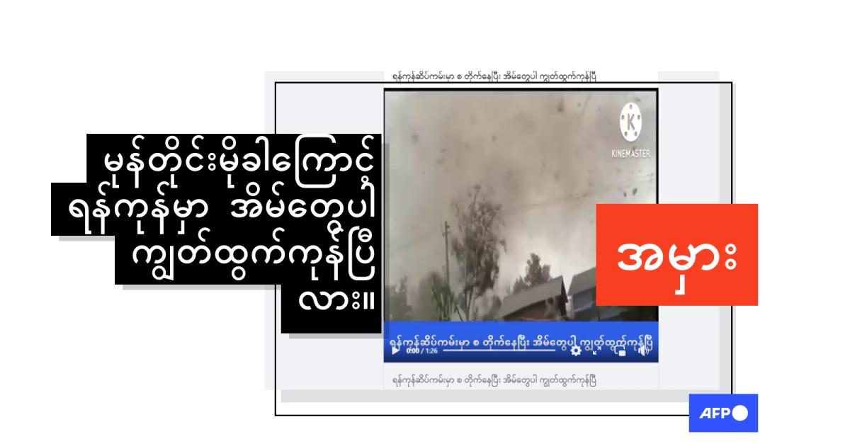 ဒါပေမဲ့ နားလည်မှုလွဲစေတဲ့ပို့စ်တွေမှာ ပြောဆိုထားသလိုမျိုး ရန်ကုန်မှာ နေအိမ်တွေ ကျွတ်ပါကုန်ပြီဆိုတဲ့ သက်သေအထောက်အထားမျိုး မတွေ့ရဘူးလို့ ရန်ကုန်မှာ ရှိတဲ့ AFP ဂျာနယ်လစ်တွေက ဆိုပါတယ်။