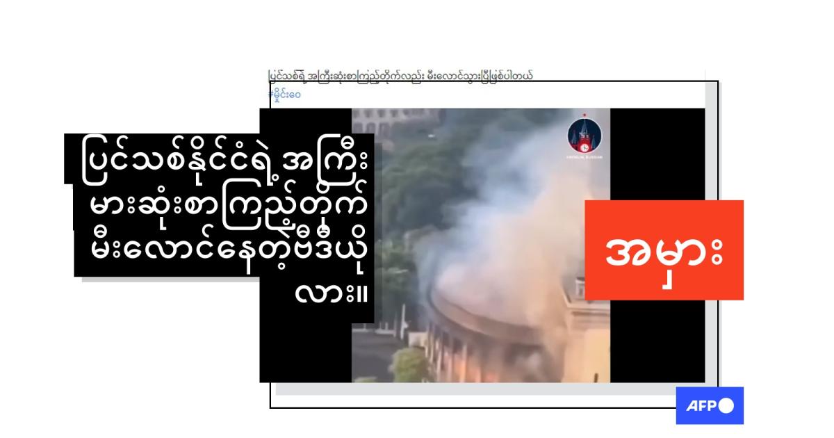 "NUG အကြမ်းဖက်အဖွဲ့ကကောင်တွေ ရောက်တဲ့နိုင်ငံနဲ့ ဒေသတွေမှာ မတည်ငြိမ်မှုဖြစ်ပွားနေ ယခုလည်း ပြင်သစ်ရဲ့ အကြီးဆုံးစာကြည့်တိုက်လည်း မီးလောင်သွားပြီဖြစ်ပါတယ်" (မူရင်းအတိုင်း) ဆိုပြီး ဇူလိုင်လ ၅ ရက်နေ့က မျှဝေထားတဲ့ ဒီပို့စ်မှာ ဆိုထားပါတယ်။