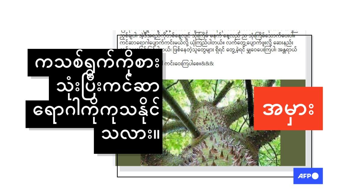 “ကသစ်ပင်(erythrina)က ကင်ဆာကို ထိထိရောက်ရောက် ကုသနိုင်တယ်ဆိုတဲ့ ခိုင်မာတဲ့အထောက်အထား မရှိသေးပါဘူး” လို့ ယူကေအခြေစိုက် ကင်ဆာရောဂါသုတေသနစင်တာ Cancer Research UK ရဲ့ ကင်ဆာအချက်အလက်ဆိုင်ရာကျွမ်းကျင်သူနာပြု Caroline Geraghty က AFP ကို ပြောပါတယ်။