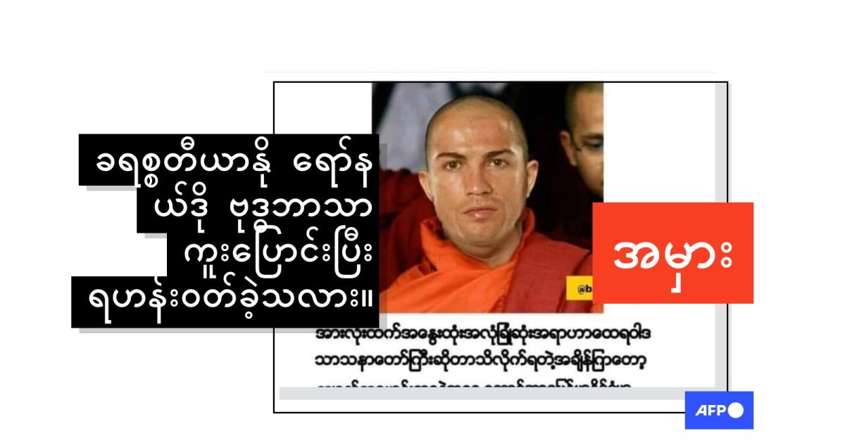 "ကမ္ဘာကျော်ဘောလုံးသမားC ရော်နယ်ဒိုဟာ အစ္စလာမ်ဘာသာကနေ ဗုဒ္ဓဘာသာကို ကူးပြောင်းပြီး အရှင် ရော်နန္ဒ ဆိုတဲ့ ဘွဲတော်နဲ့ သာသနာ့ဘောင်ကို ဝင်ရောက်သွားပြီလို့ ဗြိတိန်အခြေစိုက် Newsaline သတင်းဌာနရဲ့ သတင်းဝက်ဘ်ဆိုက်မှာဖော်ပြထားပါတယ်" (မူရင်းအတိုင်း) ဆိုပြီး သြဂုတ်လ ၇ ရက်နေ့က မျှဝေထားတဲ့ Facebook ပို့စ်က ဆိုပါတယ်။