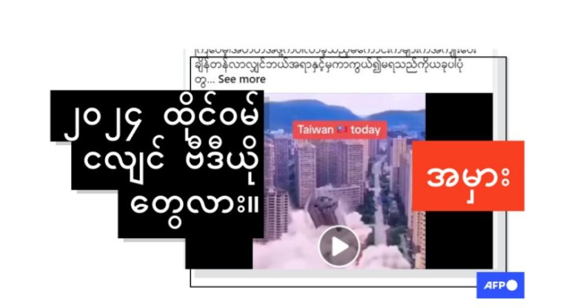 ၂၀၂၄ ခုနှစ်၊ ထိုင်ဝမ်ငလျင်ဆိုပြီး ဗီဒီယိုကို မှားယွင်းမျှဝေထားတဲ့ ပို့စ်တွေကိုလည်း AFP က အချက်အလက်စိစစ် ဖော်ပြခဲ့ပါတယ်။