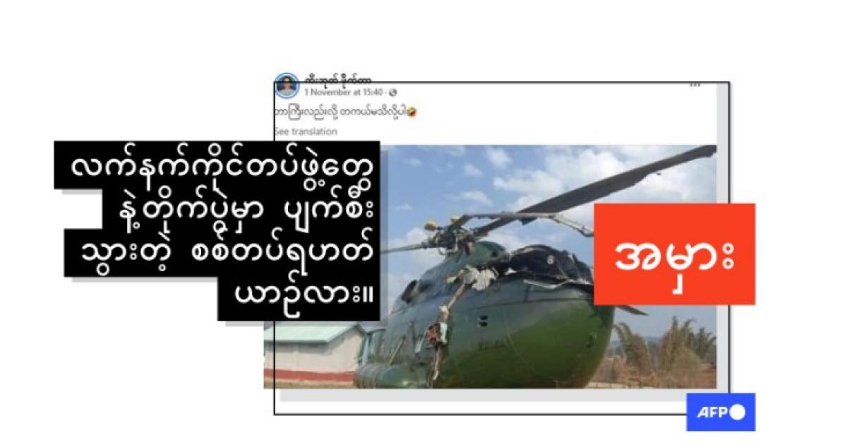 'တိုက်ခိုက်ခံရတဲ့ စစ်တပ်ရဟတ်ယာဥ်' ဆိုပြီး ဓာတ်ပုံဟောင်းတစ်ပုံ လူမှုကွန်ရက်ပေါ် မှားယွင်းပျံ့နှံ့
