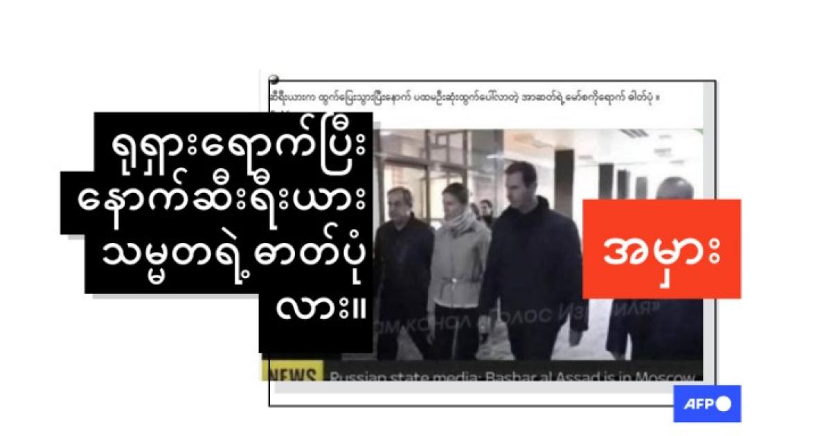 ဆီးရီးယားမြို့တော်ကို သူပုန်တပ်ဖွဲ့တွေက ဝင်ရောက်တိုက်ခိုက်ခဲ့ပြီး အာဆတ်အစိုးရ ပြိုလဲခဲ့တဲ့နောက် သမ္မတ ဘာရှာအယ်အာဆတ်ဟာ မော်စကိုမြို့ကို ထွက်ပြေးတိမ်းရှောင်ခဲ့တယ်လို့ ရုရှားမီဒီယာတွေက ဖော်ပြခဲ့ပါတယ်။ ဒါပေမဲ့ သက်တမ်းရှည် ဆီးရီးယာခေါင်းဆောင်ရဲ့ မော်စကိုရောက်ပြီး ပထမဆုံးဓာတ်ပုံလို့ဆိုထားတဲ့ လူမှုကွန်ရက်စာမျက်နှာက ပို့စ်တွေဟာ မှားယွင်းပါတယ်။ အဲဒီဓာတ်ပုံကို ၂၀၂၃ ခုနှစ်မှာ အာဆတ်က အလက်ပိုမြို့ကို သွားရောက်ခဲ့စဥ်က ရိုက်ကူးထားတာဖြစ်ပါတယ်။