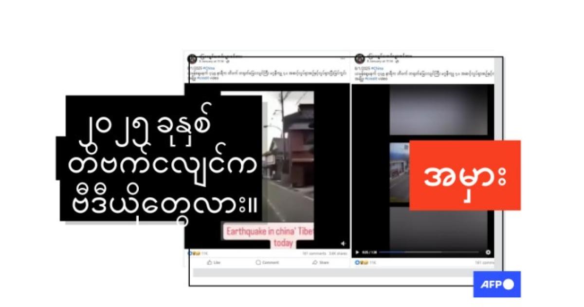 "ယမန်နေ့မနက် ၇:၃၅ နာရီက တိဗက် တရုတ်မြေငလျင်ကြီး မဂ္ဂနီကျု ၇.၁ အဆင့်လှုပ်ရှားစဉ်နှင့်လှုပ်ရှားပြီးမြင်ကွင်းအချို့။" (မူရင်းအတိုင်း) ဆိုပြီး ၂၀၂၅ ခုနှစ်၊ ဇန်နဝါရီလ ၈ ရက်ကမျှဝေထားတဲ့ ဒီ Facebook ပိုစ့်မှာရေးသားထားပါတယ်။