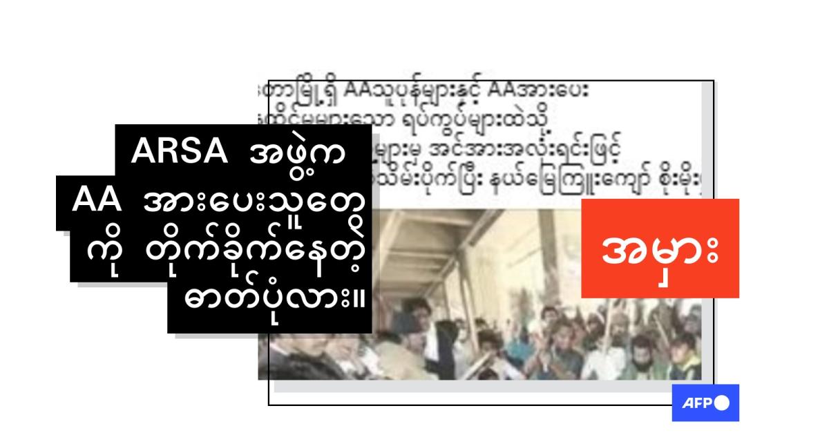 Warning: Graphic picture "မောင်တောမြို့ရှိ AAသူပုန်များနှင့် AAအားပေးများ နေထိုင်မှူ့များသော ရပ်ကွပ်များထဲသို့ ARSA.. မဆလ..အဖွဲ့များမှ အင်အားအလုံးရင်းဖြင့် ဝင်ရောက် တိုက်ခိုက်သိမ်းပိုက်ပြီး နယ်မြေကြူးကျော် စိုးမိုးမှူ့ များစွာရှိနေ...." (မူရင်းအတိုင်း) ဆိုပြီး ၂၀၂၅ ခုနှစ်၊ ဇန်နဝါရီလ ၁၆ ရက်က မျှဝေထားတဲ့ ဒီ Facebook ပိုစ့်မှာရေးသားထားပါတယ်။ အာရကန်ရိုဟင်ဂျာကယ်တင်ရေးတပ်မတော်ကိုလည်း အတိုကောက်အနေနဲ့ ARSA ဆိုပြီးသုံးနှုန်းထားပါတယ်။
