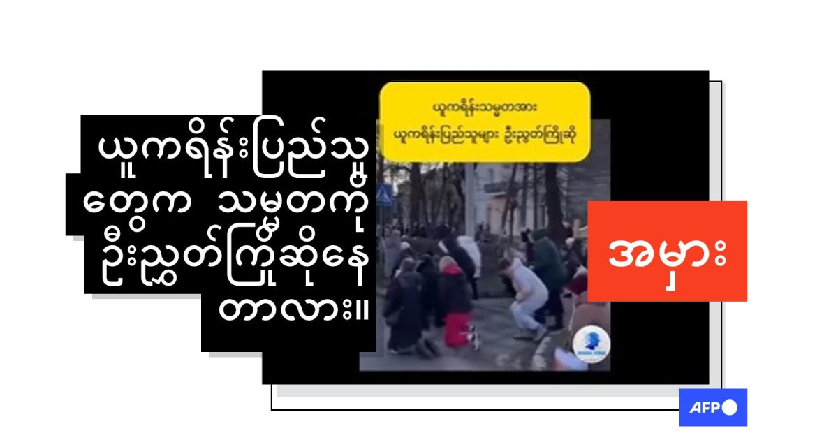AFP အနေနဲ့ ရုရှား-ယူကရိန်းစစ်ပွဲနဲ့ ပတ်သက်တဲ့ အချက်အလက်မှားတွေကို ဒီလင့်ခ်၊ ဒီလင့်ခ် နဲ့ ဒီလင့်ခ်တွေမှာ ယခင်ကတည်းက အချက်အလက်စိစစ်ခဲ့ပါတယ်။