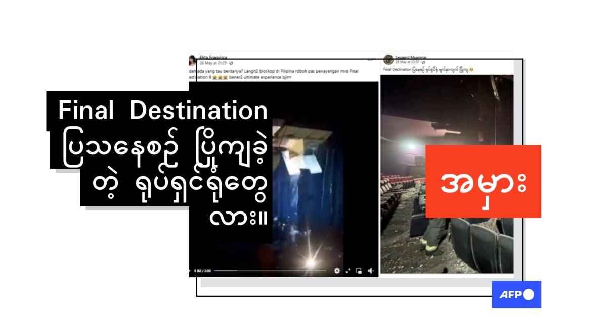 "သိပြီးကြပြီလား။ ဖိလစ်ပိုင်မှာ Final Destination 6 ပြနေတုန်း ရုပ်ရှင်ရုံ မျက်နှာကျက်ပြိုကျတာ။ တကယ့်ကို အဆိုးရွားဆုံး အတွေ့အကြုံပဲ"ဆိုပြီး အင်ဒီုနီးရှားဘာသာစကားနဲ့ ၂၀၂၅ ခုနှစ်၊ မေလ ၂၆ ရက်က မျှဝေထားတဲ့ ဒီ Facebook ပိုစ့်မှာရေးသားထားပါတယ်။