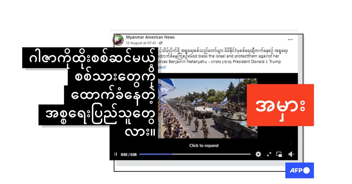 ပြည်တွင်းရော ပြည်ပကပါ ဝေဖန်သံတွေထွက်ပေါ်ခဲ့တဲ့ အစ္စရေးစစ်တပ်ရဲ့ ဂါဇာမြို့တော်ကို ထိန်းချုပ်ဖို့ အစီအစဥ်သစ်တစ်ရပ် ကြေညာခဲ့တဲ့နောက် ဒီမှားယွင်းပြောဆိုမှုနဲ့ ဗီဒီယိုတွေဟာ Facebook မှာပျံ့နှံ့လာတာပဲဖြစ်ပါတယ်။ (Archived link)