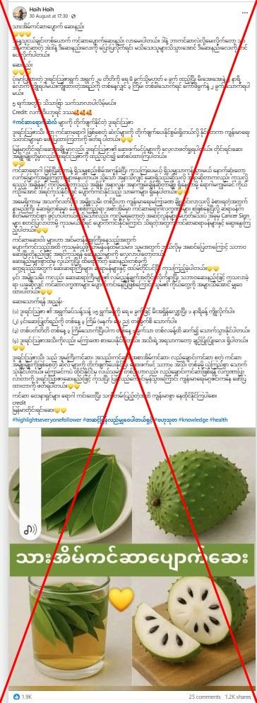 ဆေးဖက်ဝင်သစ်သီး၊ အပင်တွေနဲ့ ရောဂါအမျိုးမျိုးကို ပျောက်ကင်းစေနိုင်တယ်လို့ဆိုထားတဲ့ မှားယွင်းပြောဆိုချက်တွေကို AFP က ယခင်ကလည်း အချက်အလက်စိစစ်ထားပါတယ်။