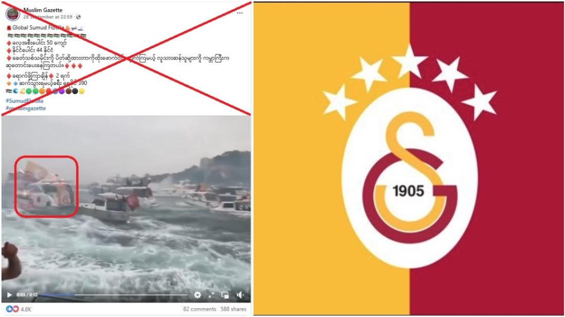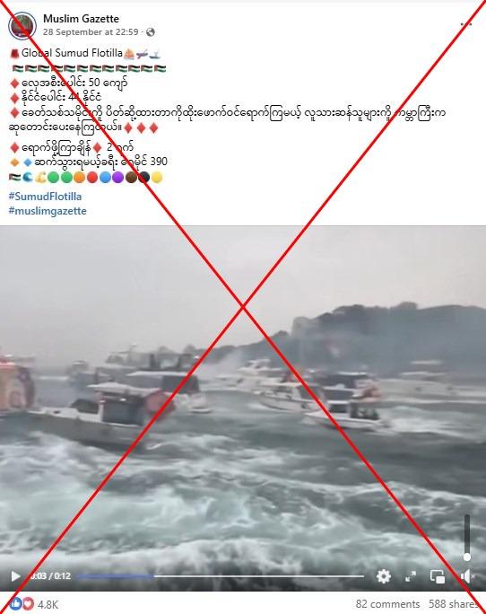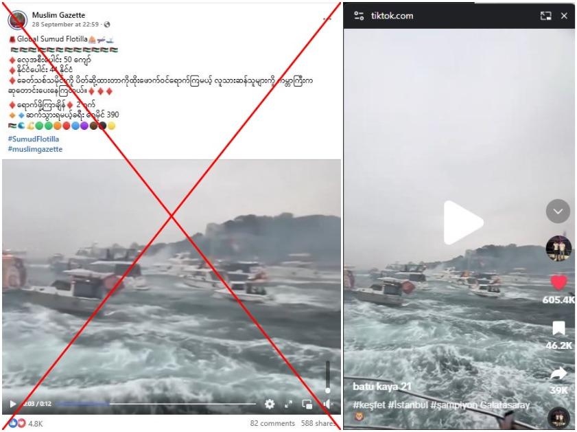တူရကီက စက်လှေတွေနဲ့ အောင်ပွဲခံဗီဒီယိုကို ဂါဇာသွားမယ့် တက်ကြွလှုပ်ရှားသူတွေဆိုပြီး မှားယွင်းမျှဝေ