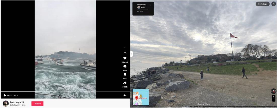 ဗီဒီယိုထဲက အလံတိုင်နဲ့ သစ်ပင်တွေဟာ Google Maps ရဲ့ Street View ဓာတ်ပုံမှာတွေ့ရတဲ့ Sarayburnu ကျွန်းဆွယ်နဲ့ ကိုက်ညီမှုရှိပါတယ်။ (Archived link)