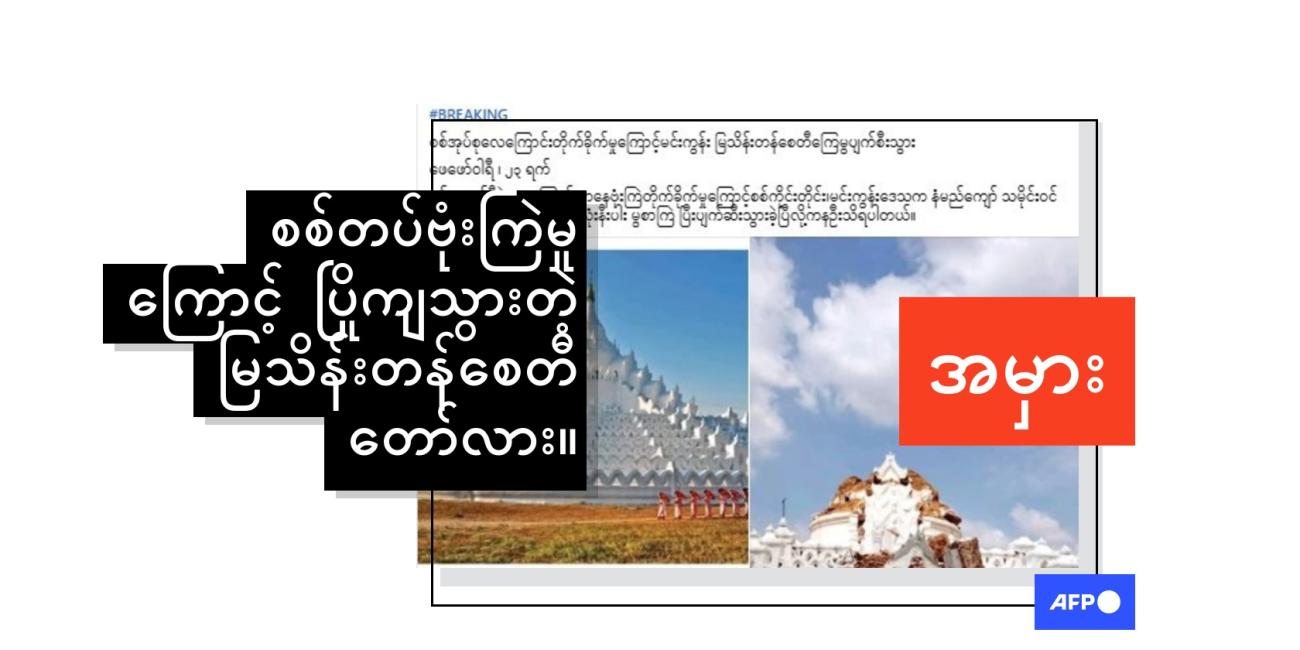 မြန်မာနိုင်ငံမတည်ငြိမ်မှုနဲ့ပတ်သက်တဲ့ မှားယွင်းပြောဆိုမှုတွေကို AFP က ယခင်ကလည်း ဒီလင့်ခ်မှာ အချက်အလက်စိစစ်ထားပါတယ်။