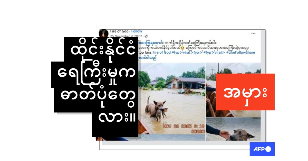 "ထိုင်းနိုင်ငံအတွက်ဆုတောင်းပေးကြရအောင်။ လက်ရှိအချိန်အထိရေကြီးနေတုန်းပါ။ ခွေးလေးတစ်ဟာ ကြောင်ကလေးကိုကယ်တင်နိုင်ခဲ့ပါတယ် ကြောင်ကလေးမိသားစုဟာရေကြီးထဲ့မှာမျော့ပါသွားကြပြီးတဲ့" (မူရင်းအတိုင်း) ဆိုပြီး ၂၀၂၅ ခုနှစ်၊ နိုဝင်ဘာလ ၂၅ ရက်ကမျှဝေထားတဲ့ ဒီ Facebook ပို့စ်မှာ ရေးသားထားပါတယ်။