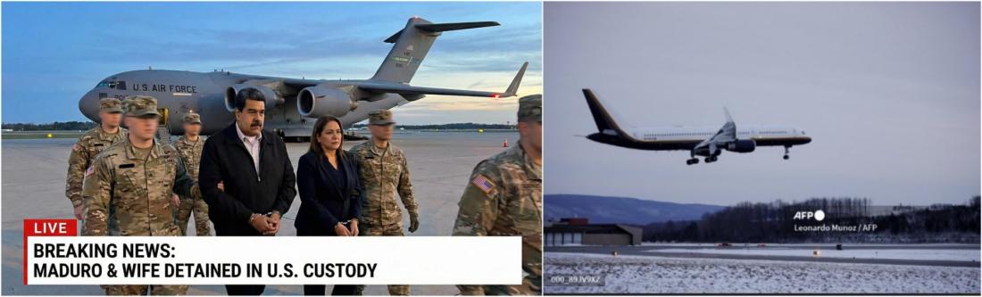 AFP ကဖြန့်ဝေထားတဲ့ သတင်းဓာတ်ပုံမှာတွေ့ရတဲ့ မာဒူရိုကို နယူးယောက်ခ်ကို သယ်ဆောင်လာတဲ့ လေယာဥ်အမျိုးအစားကလည်း မှားယွင်းပိုစ့်ကလေယာဉ်နဲ့ တူညီခြင်းမရှိပါဘူး။ (Archived link)