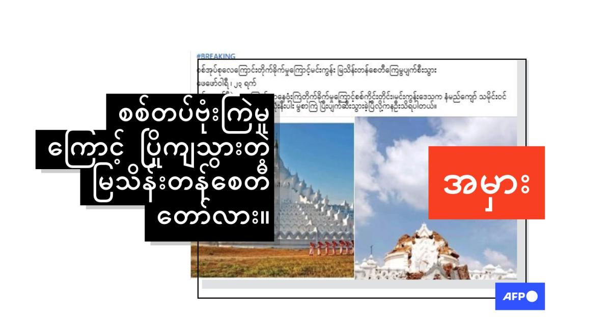 မြန်မာနိုင်ငံ မငြိမ်မသက်မှုတွေနဲ့ ပတ်သက်တဲ့ အခြားမှားယွင်းပြောဆိုမှုတွေကိုလည်း AFP က အချက်အလက်စိစစ်ထားပါတယ်။