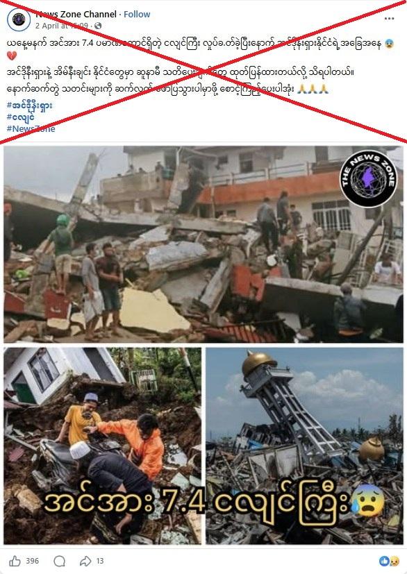 ဧပြီလအင်ဒိုနီးရှားငလျင်အပြီး ယခင်ငလျင်တွေကဓာတ်ပုံဟောင်းတွေမှားယွင်းပျံ့နှံ့