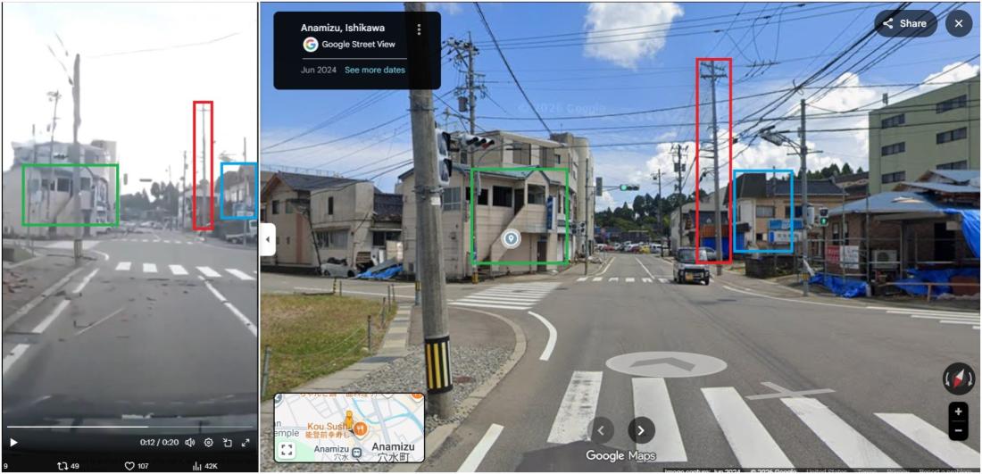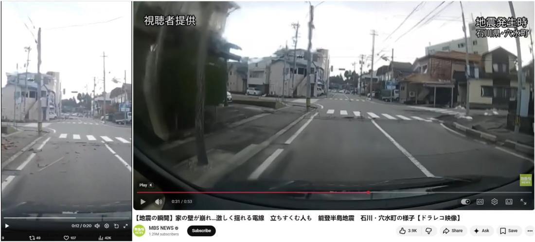 ဆက်လက်ပြီး အဓိကကျတဲ့စကားလုံးတွေနဲ့ အချက်အလက်ရှာဖွေကြည့်တဲ့အခါ ဒီဗီဒီယိုကို X အသုံးပြုသူတစ်ဦးက ၂၀၂၄ ခုနှစ်၊ ဇန်နဝါရီလ ၆ ရက်မှာ သူမရဲ့ မိသားစုနဲ့အတူ ငလျင်ဘေးလွတ်ရာ ထွက်ပြေးရတဲ့ အတွေ့အကြုံနဲ့အတူ မျှဝေထားပါတယ်။ (Archived link)