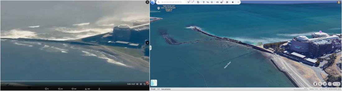 ဒီဗီဒီယိုဟာ ၂၀၂၆ ခုနှစ်၊ ဧပြီလ ၂၀ ရက်မှာ ၈၀ စင်တီမီတာရှိ ဆူနာမီလှိုင်းရိုက်ခတ်ခဲ့တဲ့ ကူဂျီမြို့ရဲ့ တောင်ဘက် ၄၅၀ ကီလိုမီတာ (၂၇၉ မိုင်) အကွာက Ibaraki မြို့ရဲ့ Google Earth ဂြိုဟ်တုပုံရိပ်နဲ့ ကိုက်ညီနေပါတယ်။ (Archived link)