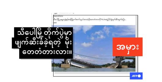 ပုံရိပ် မြန်မာနိုင်ငံ မငြိမ်မသက်မှု ပုံနှိပ်ဖော်ပြသည့်နေ့စွဲ 24/10/2025 ရှမ်းပြည်နယ်မှာ မိုင်းခွဲဖျက်ဆီးခံရတဲ့ တံတားဆိုပြီး ရခိုင်က ဓာတ်ပုံဟောင်း မှားယွင်းပျံ့နှံ့